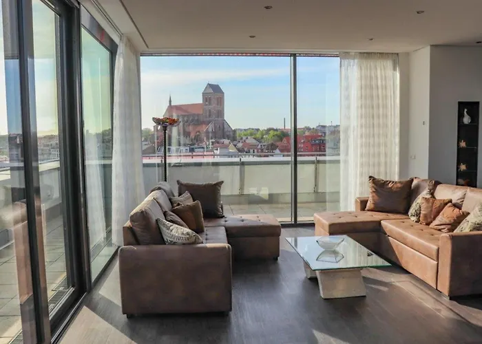 Das Penthouse-Appartement Diamant - Abc591 Wißmar in Wißmar befindet sich etwa 800 Meter vom Stadtgeschichtlichen Museum der Hansestadt Wismar im Schabbell und etwa 25 Minuten zu Fuß vom Technischen Landesmuseum entfernt. Dieses Apartment bietet einer Terrasse mit einem Ausblick aufs Meer und liegt nur 250 m vom Baumhaus.